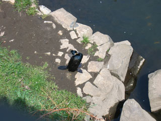 どうも一羽だけずっとこの辺りにいるらしい。捨てられた傘が、まだまだ川を大事にしない人がいることを物語っていて悲しい。