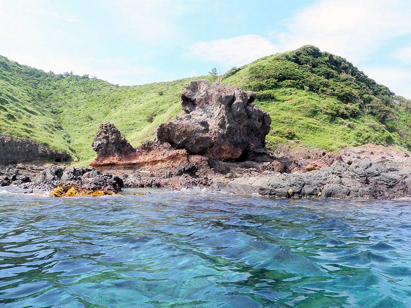 この辺りの断崖は柱状節理の崩落跡などが見れて迫力がある。