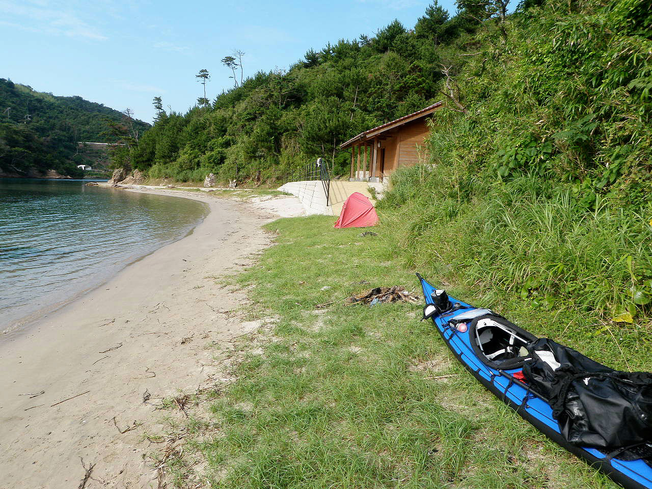 昨日の明屋キャンプ場とは対照的な白い砂浜に上陸。