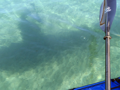 ネオプレンのソックスを忘れて、裸足でパドリングシューズを履いているが、水も暖かいし寒くない。