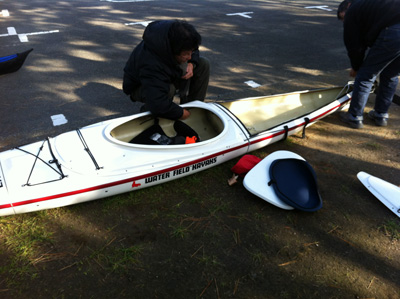 3分割のリジットカヤックが、コックピットの中に全て収納されてしまっている。