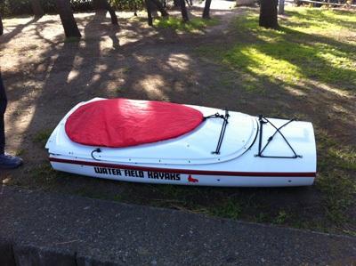 で、お待たせしました。これが、朝の葉山公園で目撃したウォーター フィールド カヤックス -WATER FIELD KAYAKS- の新艇「EX CUBE」です。