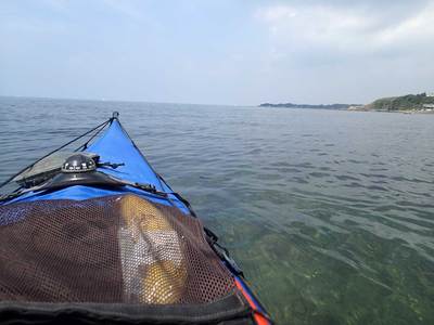 黒崎の鼻下の海岸には沢山の子供達がいて、ちょうど数艇のシットオンカヤックが海に漕ぎ出したところだった。