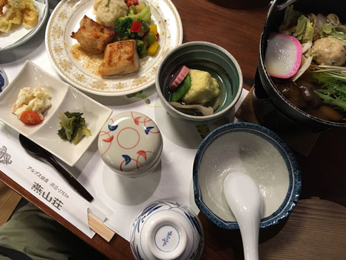気持ちのいい温泉の後、例によって部屋で一杯やり、待ちに待った夕食で一杯。