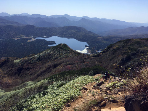 尾瀬沼の手前に見えるてっぺんが禿げた山が、先ほどまでいたミノブチ岳。