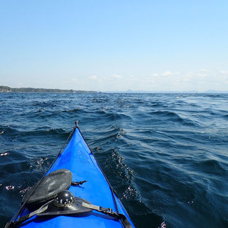 「終日風速は3メートル以下」という予報はどこへやら、デッキも漕ぎ手もスプレーを浴びて潮だらけである。