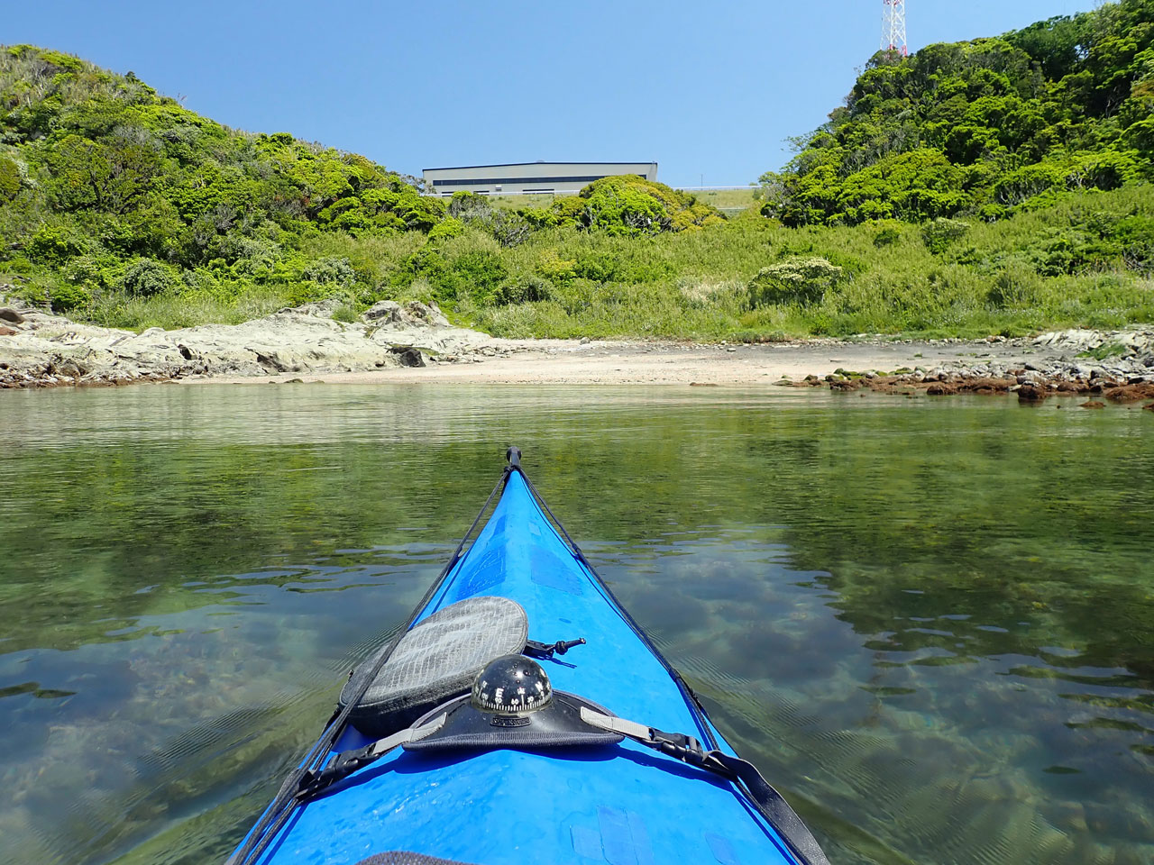 いつも休憩やキャンプで使う毘沙門の浜も、大潮の干潮時では、こんな感じで上陸しなければならない。