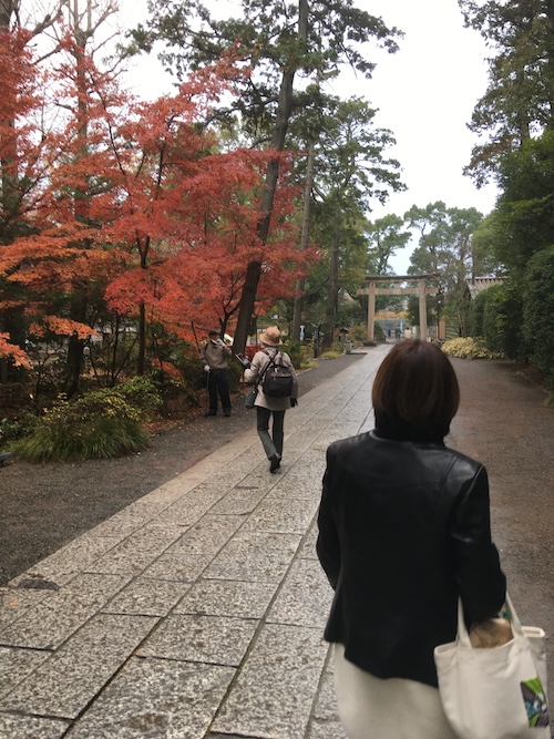 ボトルでもらったスパークリングワインをやりながら近況報告を聞く。ランチ後、裏通りにあったカフェで温かいコーヒーを飲み、八幡宮まで散策。
