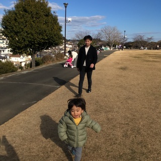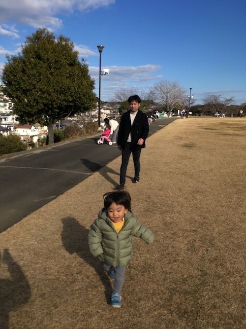 食事がひと段落した後は、昨年と同じように私と息子で2才児を連れ出し、近所の公園に散歩に行った。