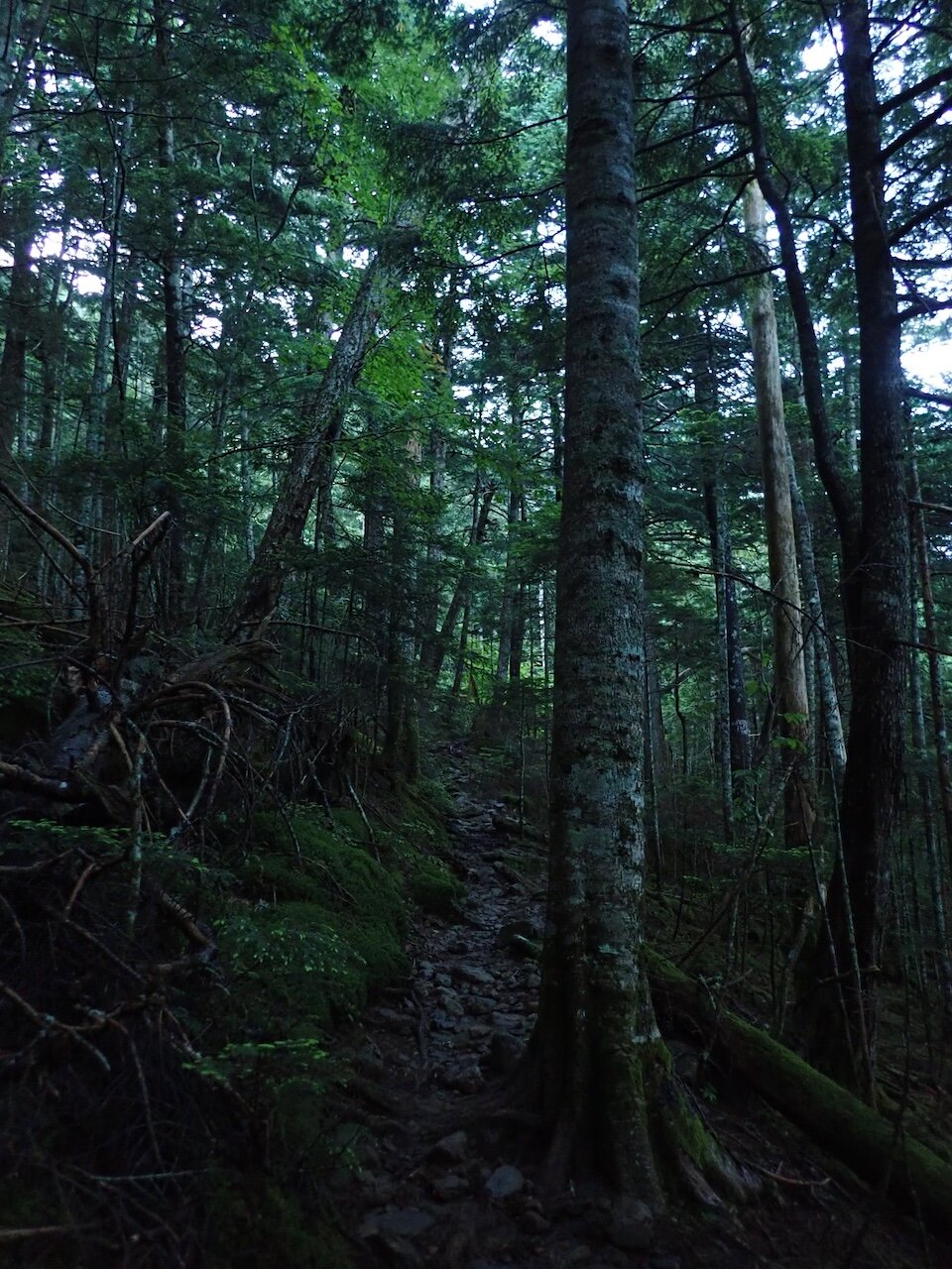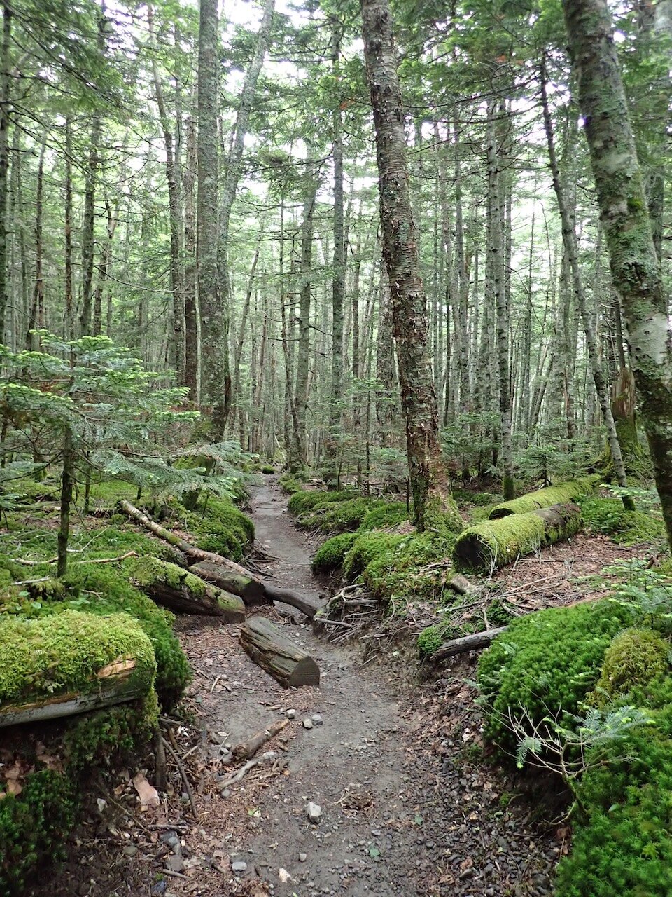 不思議な景観で道はなく、この岩の上をなんとなく歩いていく。"普通の道" に復帰し、美しい苔に囲まれた道を仙水小屋に向かう。