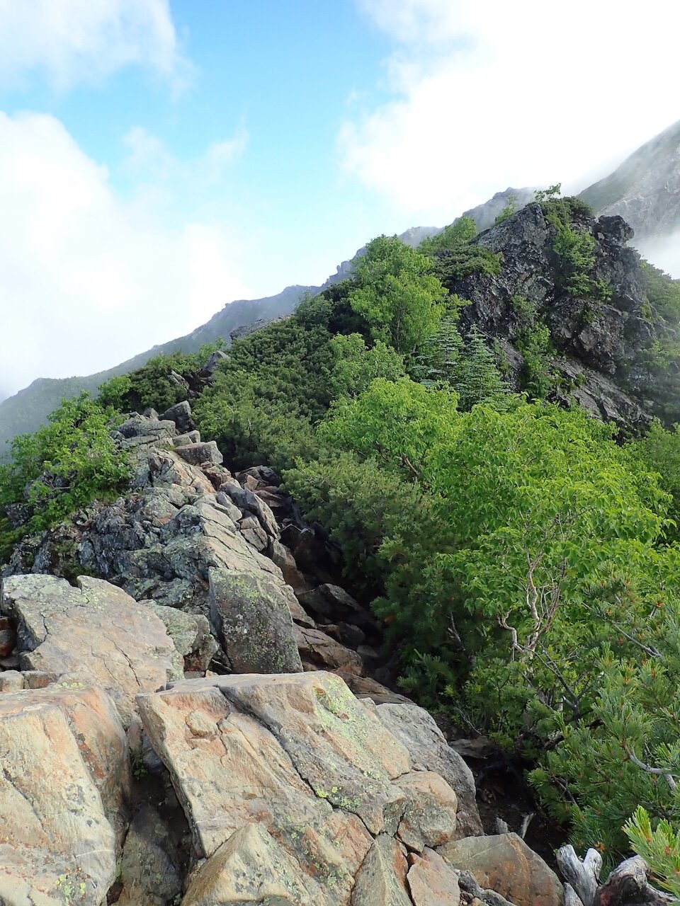 誰にも会わない。一旦下って、岩の尾根を進む。