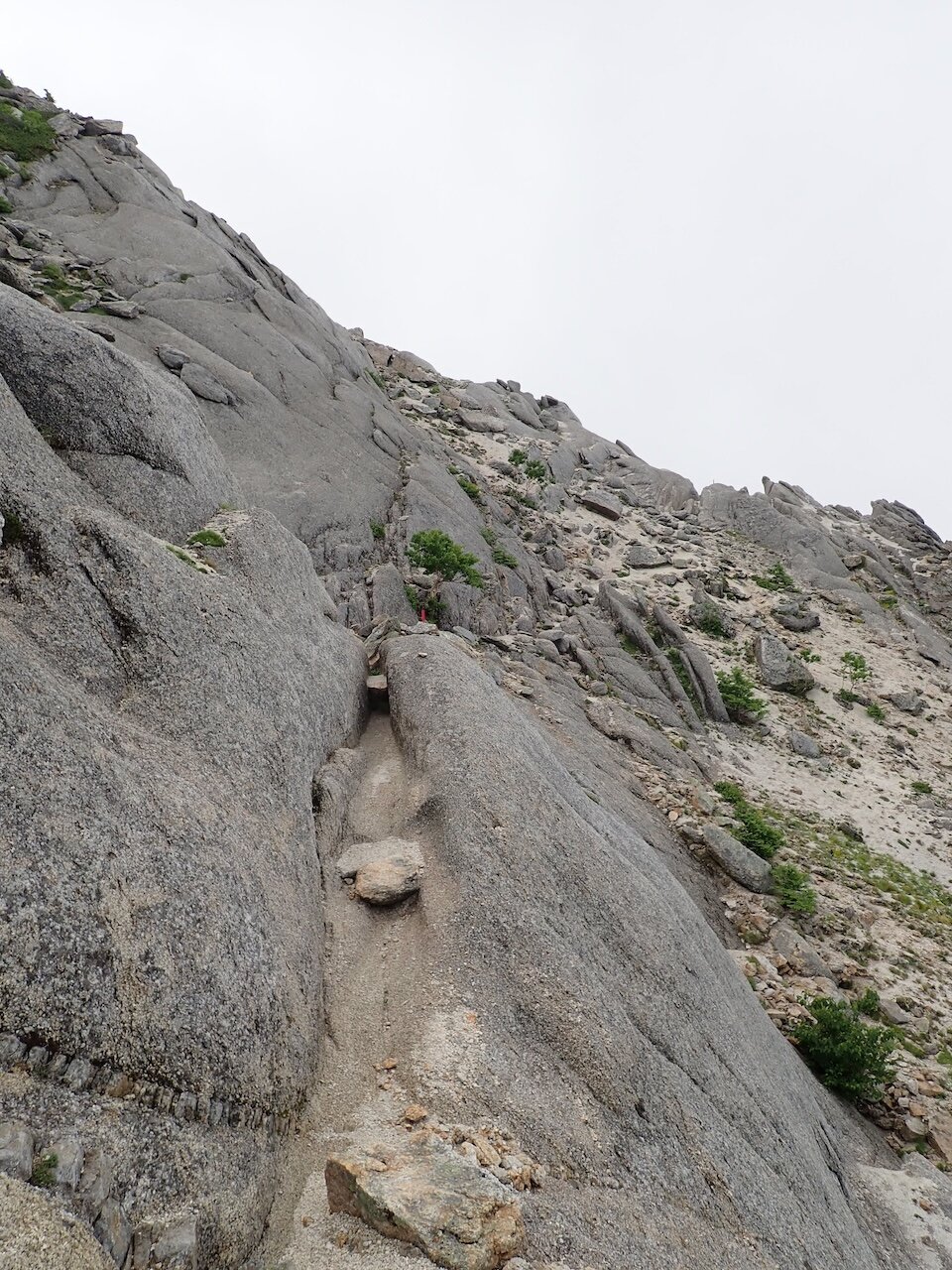 花崗岩の砂は踏ん張りが効かず、私は途中でふくらはぎが痛くなってしまった。ふくらはぎをかばいながら、やっとこ山頂に到着。