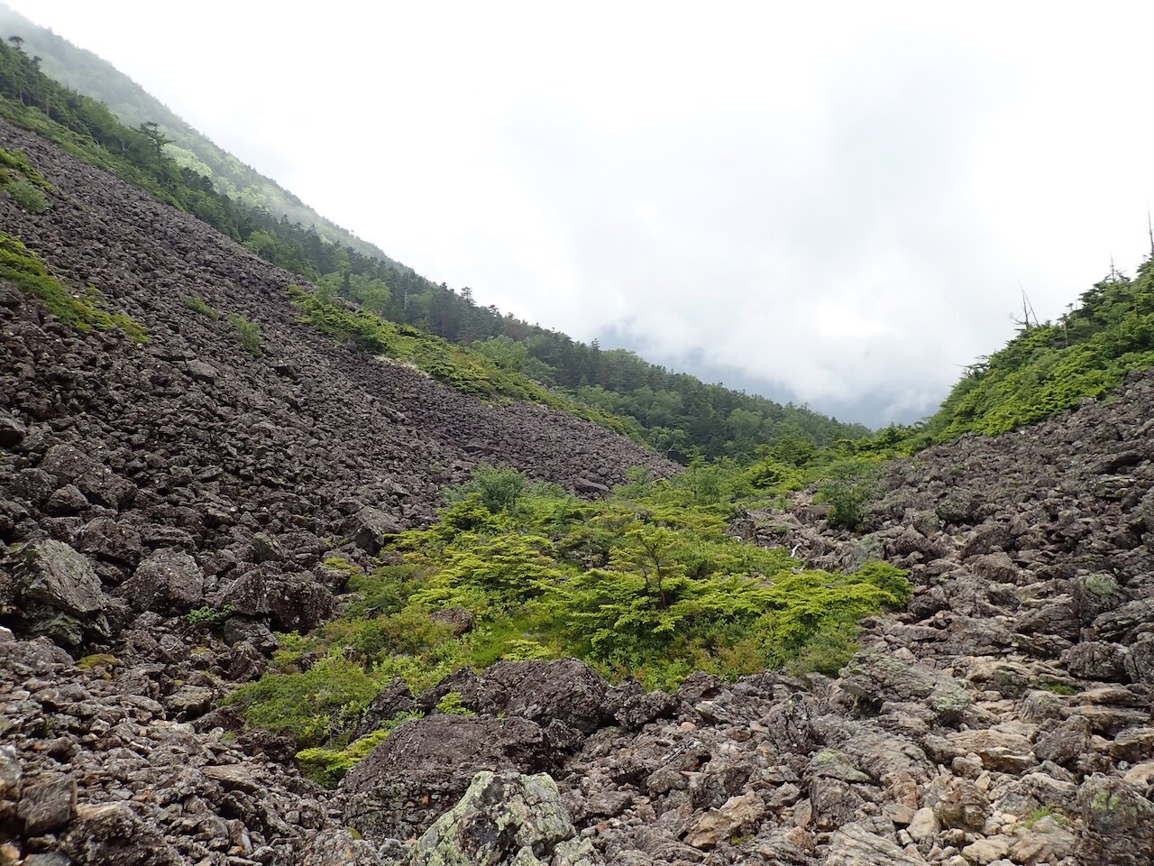 仙水峠の分岐を過ぎ仙水小屋に向かと、このようなゴーロ状の場所になった。