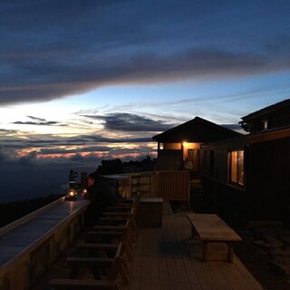 9月23日、instagramの友達が、御嶽山五の池小屋のテラスでアップルパイを食べている写真を投稿した。
