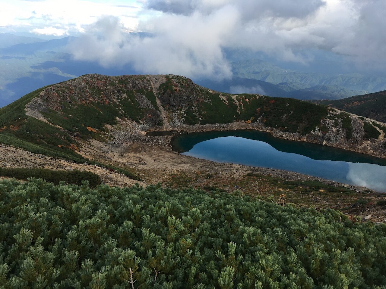いかにも火口湖らしいたたずまいを見せる三ノ池。