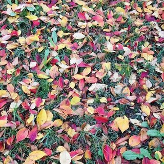 近所のマーケットで買い出しをして戻る途中、色づいた木々とカラフルな落ち葉が目に入った。
