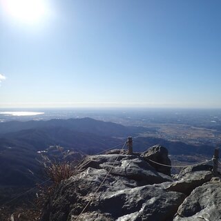 岩だらけの急な道を登った先に男体山の山頂があった。![]()