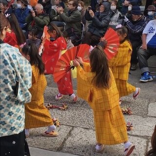 海南神社の参道で舞の披露。