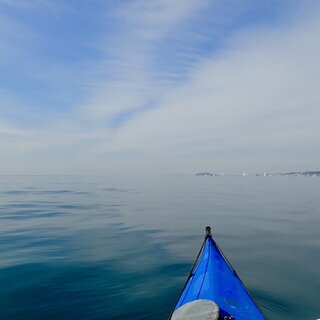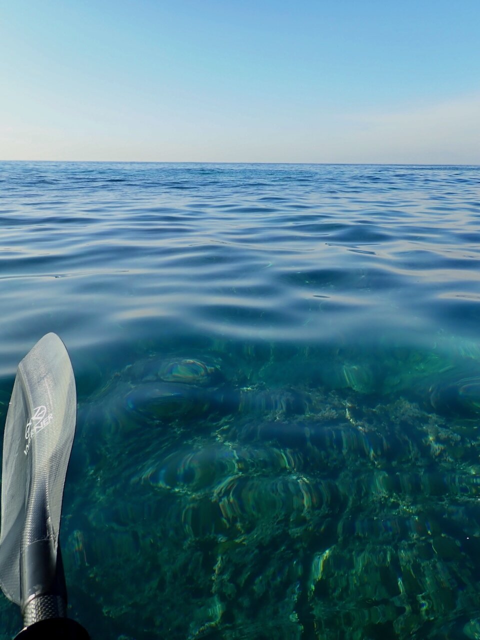 復路で見る透明度もあまり良くないなぁ…と下を見ながら漕いでいたら、突然大きなウネリが立て続けにやってきてびっくりした。