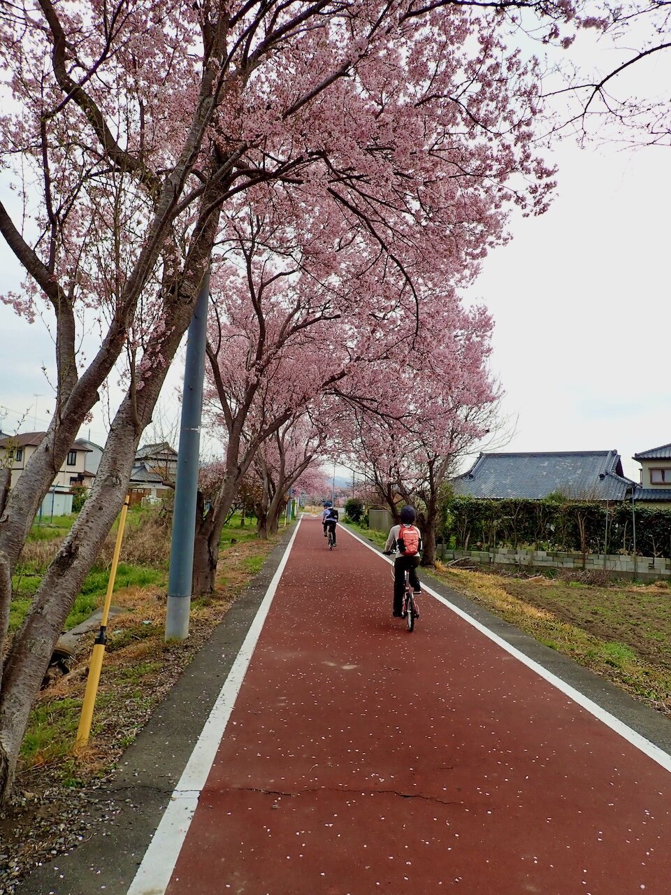 元々電車が走っていた場所なので、基本的に真っ直ぐな道が多いけど、時々こんな感じで曲がりくねっている道もある。![]()